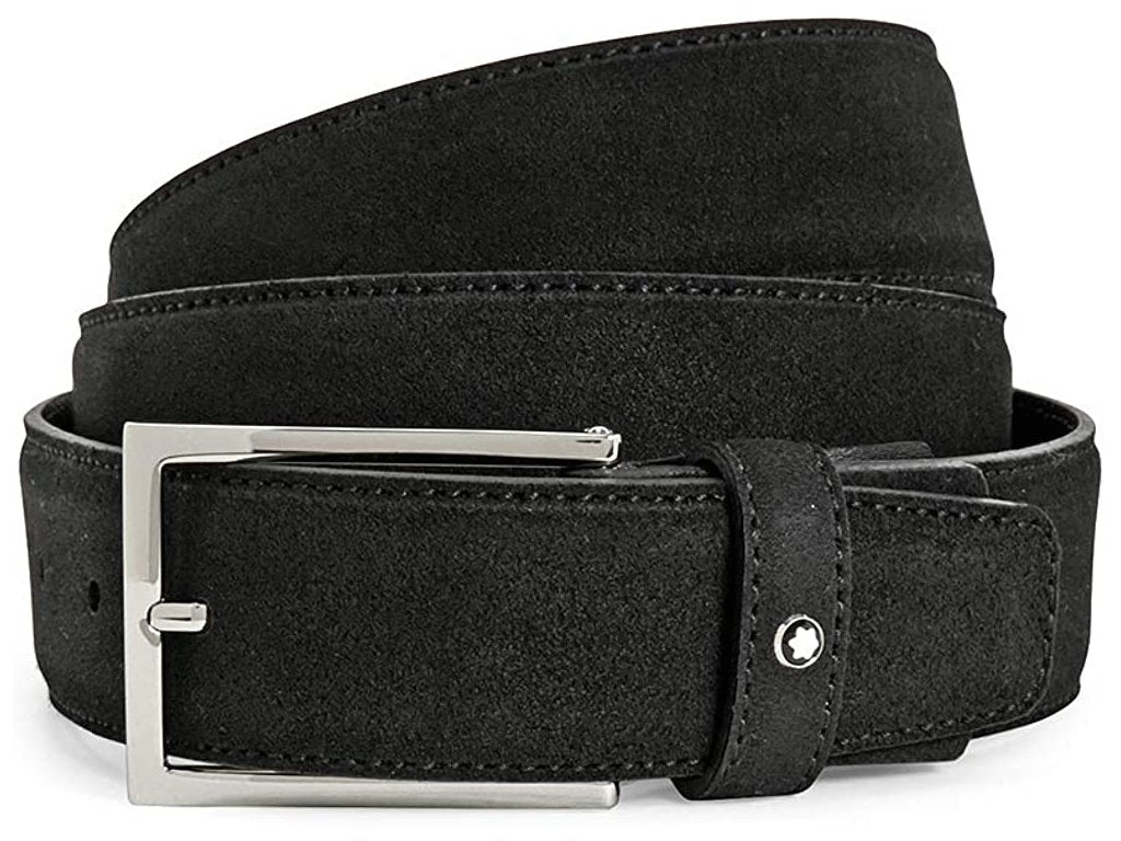 El cinturón Montblanc 112958 está confeccionado en gamuza negra de alta calidad, ofreciendo un toque de sofisticación y elegancia. Su diseño clásico lo convierte en un accesorio versátil, ideal tanto para ocasiones formales como para el uso diario.