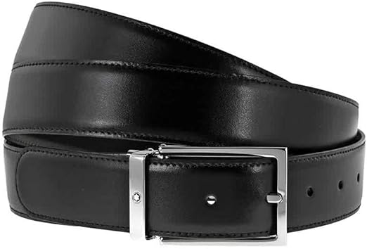 El cinturón Montblanc 113347 es reversible, con una cara en piel negra y otra en marrón, incluída una hebilla rectangular de acero bañado en paladio con el emblema de Montblanc. Su correa autoadjustable de 35 mm y 120 cm permite un fit perfecto, ideal para ocasiones formales y uso diario