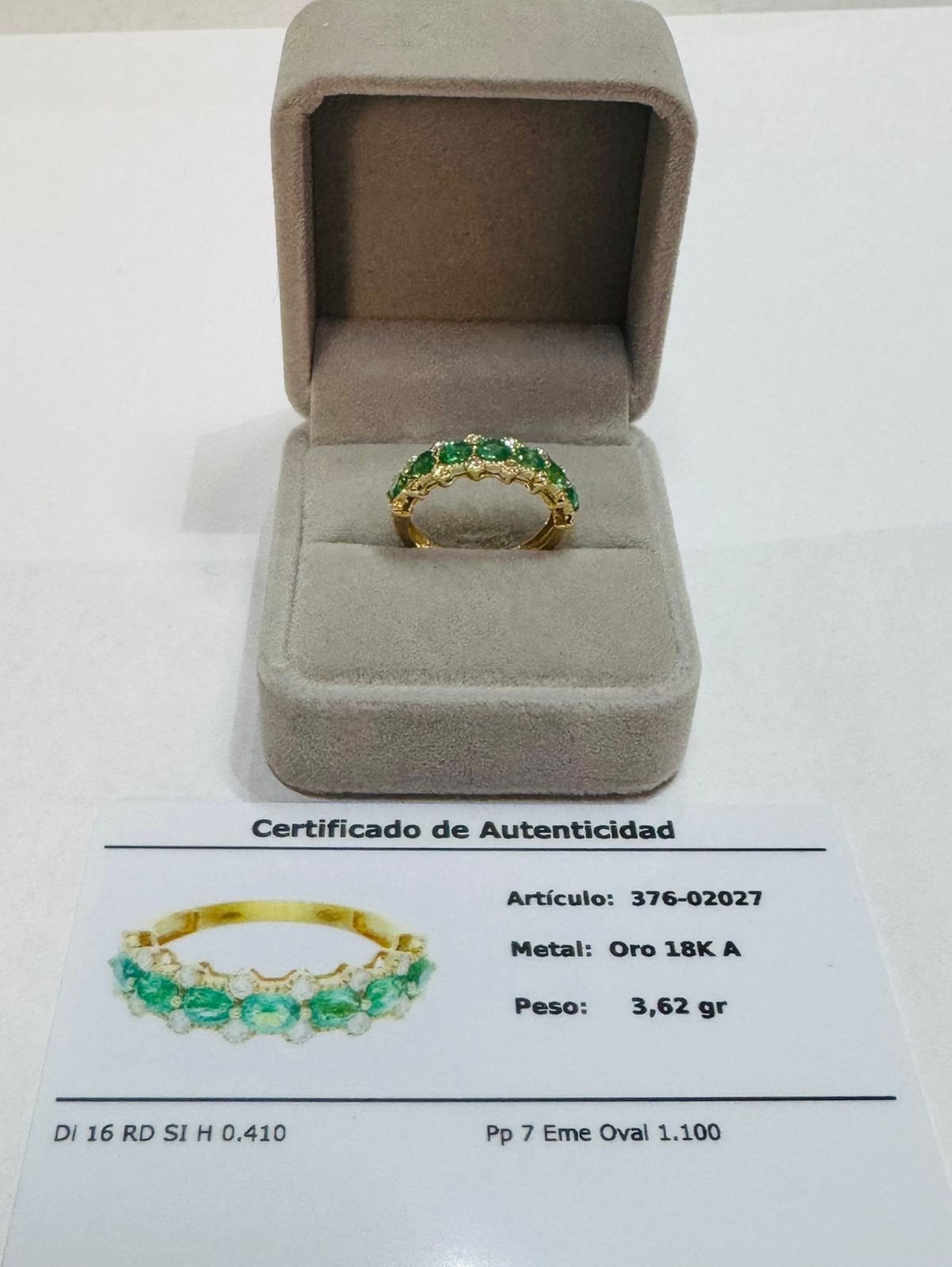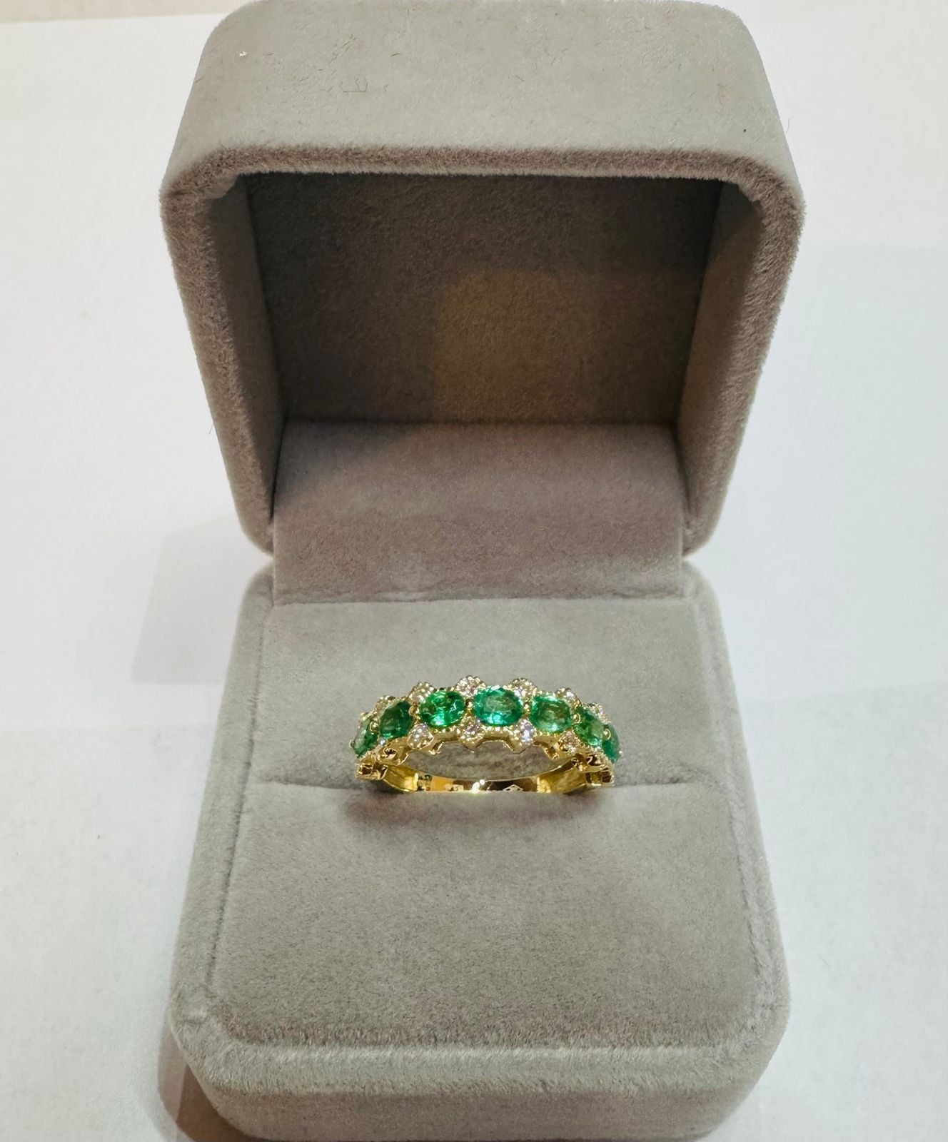 Anillo Churumbela - Half Eternity PINETA 18K con Esmeraldas Oval y Diamantes en Oro Amarillo 18K