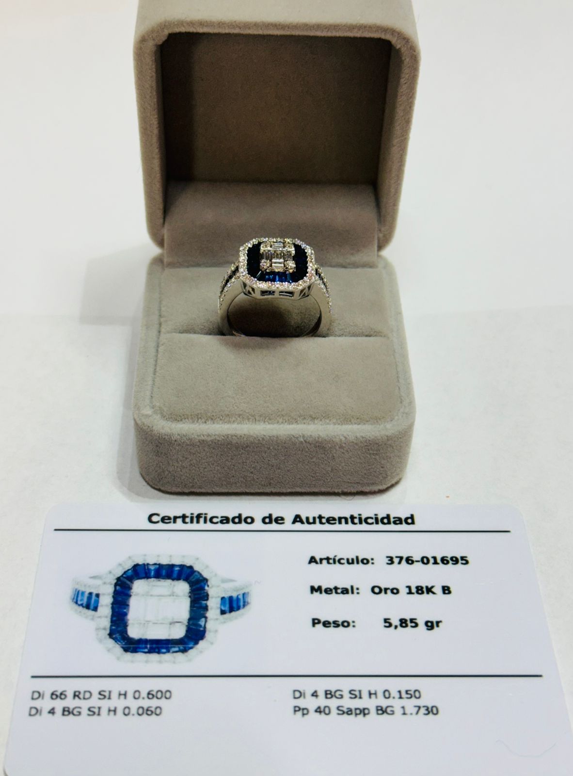 Anillo PINETA 18K con Zafiros Baguette y Diamantes en Oro Blanco 18K