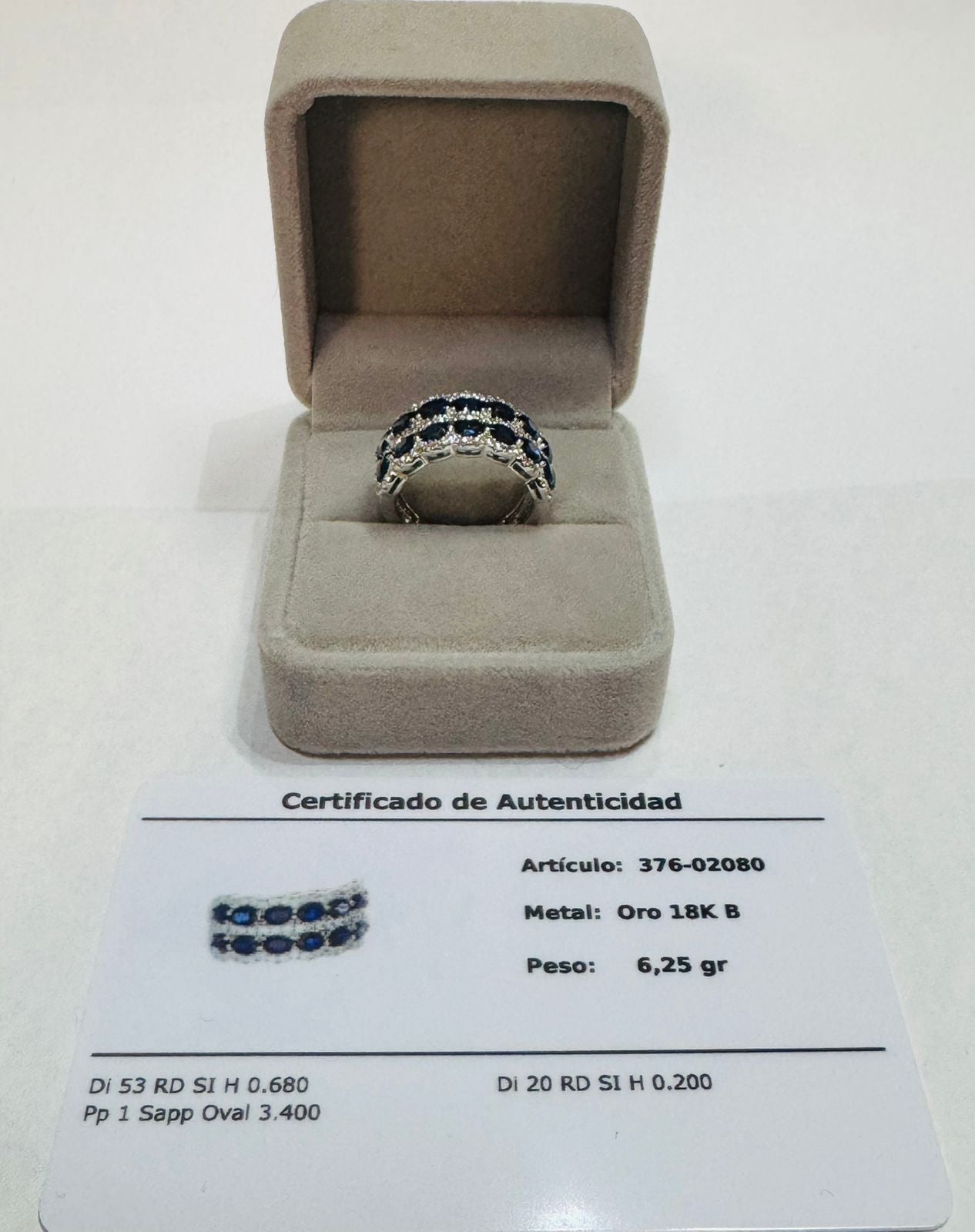 Anillo PINETA 18K de Oro Blanco con Zafiros Oval y Diamantes – Banda Ancha de Alta Joyería