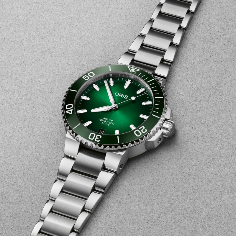 El Aquis Date Calibre 400 (01 400 7769 4157-07 8 22 09PEB) ofrece una combinación ideal de funcionalidad técnica y diseño atractivo. Su calibre interno proporciona una autonomía de cinco días y un rendimiento antimagnético elevado. La esfera verde con acabado sunray aporta un carácter distintivo, mientras que la caja robusta con bisel cerámico y hermeticidad a 300 metros lo hacen perfecto tanto para actividades acuáticas como para el uso diario.