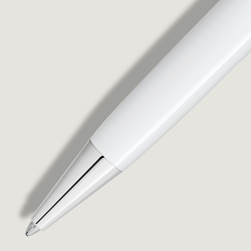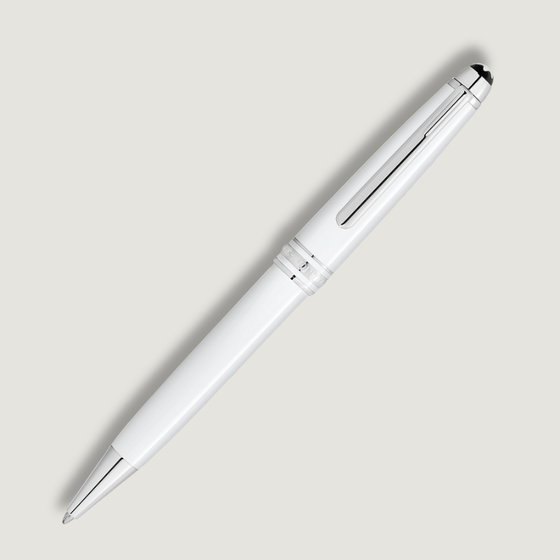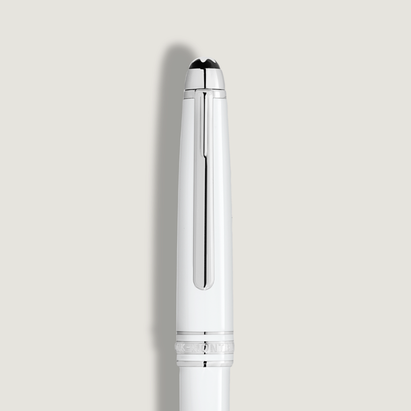 El bolígrafo Meisterstück Classique, elaborado en resina preciosa blanca con elegantes detalles platinados y realzado por el icónico emblema blanco Montblanc incrustado en la parte superior del capuchón, se convierte en un icono exclusivo del diseño.