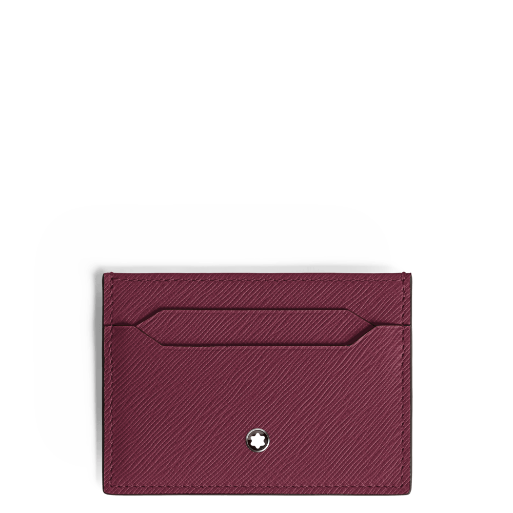 Este tarjetero de la línea Sartorial de Montblanc está confeccionado en piel de becerro con estampado Saffiano en color cassis (burdeos). Ofrece capacidad para cinco tarjetas de crédito y presenta un diseño elegante y compacto, ideal para quienes buscan funcionalidad con estilo sofisticado y moderno.