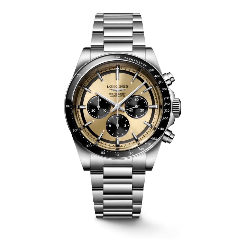 Conquest, el nombre del reloj definitivo para el día a día, también fue la primera colección de Longines cuyo nombre fue protegido por la Oficina Federal de la Propiedad Intelectual de Suiza en 1954. Desde entonces, la colección ha evolucionado a través del diseño y la tecnología, pero se ha mantenido fiel a su identidad original, creando una armoniosa fusión de audacia, diseño contemporáneo y elegancia deportiva. Cada reloj Conquest Chronograph es una muestra del firme compromiso de Longines con el rendimiento y la excelencia relojera. Estos cronógrafos están impulsados por un exclusivo calibre Longines equipado con espiral de silicio.