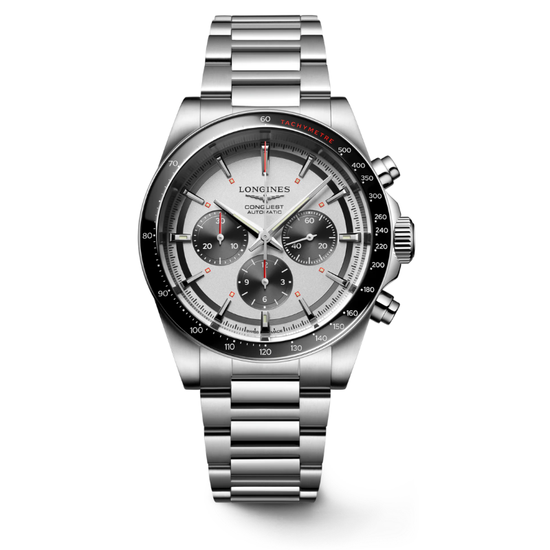 Conquest, el nombre del reloj definitivo para el día a día, también fue la primera colección de Longines cuyo nombre fue protegido por la Oficina Federal de la Propiedad Intelectual de Suiza en 1954. Desde entonces, la colección ha evolucionado a través del diseño y la tecnología, pero se ha mantenido fiel a su identidad original, creando una armoniosa fusión de audacia, diseño contemporáneo y elegancia deportiva. Cada reloj Conquest Chronograph es una muestra del firme compromiso de Longines con el rendimiento y la excelencia relojera. Estos cronógrafos están impulsados por un exclusivo calibre Longines equipado con espiral de silicio