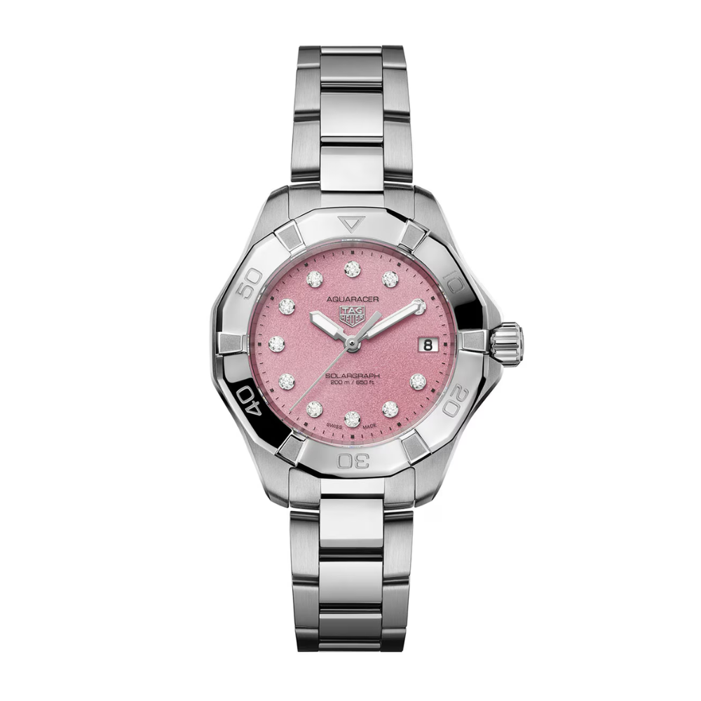 El TAG Heuer Aquaracer Professional 200 Solargraph alía elegancia y rendimiento, reinterpretando con refinamiento el versátil reloj herramienta de la Maison. La esfera rosa con índices de diamantes evoca la belleza etérea de las auroras boreales, que celebran la exploración con estilo.
