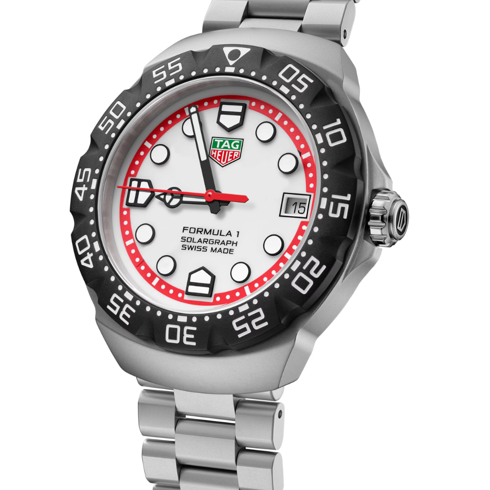 El TAG Heuer Formula 1 Solargraph, ahora en un versátil tamaño de 38 mm, muestra su enérgico encanto. Con un movimiento de cuarzo alimentado por energía solar y un diseño contemporáneo, reinterpreta el reloj original de la Serie 1 con materiales modernos y colores vibrantes, ofreciendo un reloj dinámico para la nueva generación.