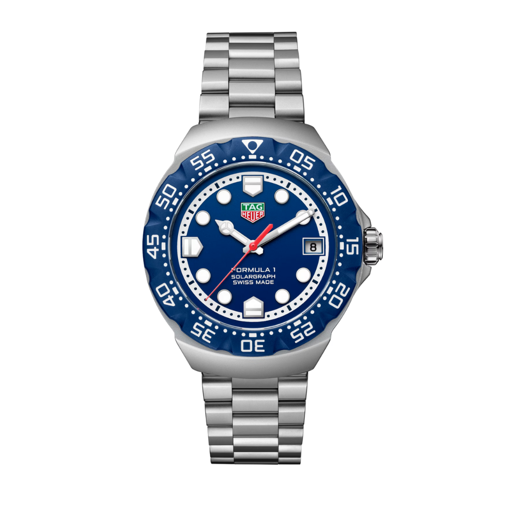 Inspirado en el reloj original de la Serie 1, el TAG Heuer Formula 1 Solargraph de 38 mm amplía la estética energética con una esfera azul vibrante y un diseño elegante. Combinando un estilo lúdico con la funcionalidad, este reloj alimentado por energía solar está hecho para quienes marcan tendencia y valoran tanto el estilo como la innovación.