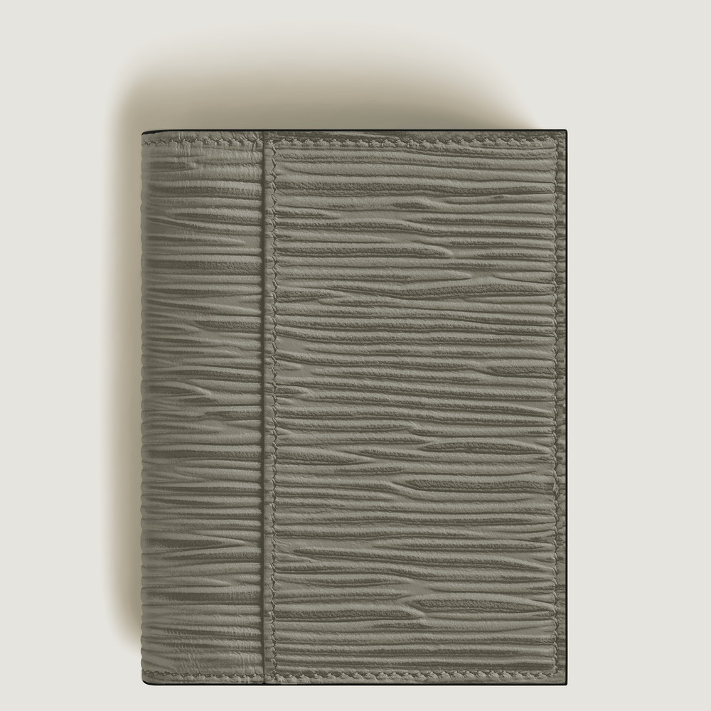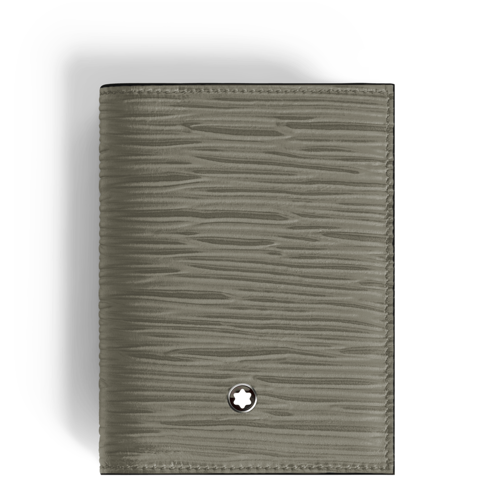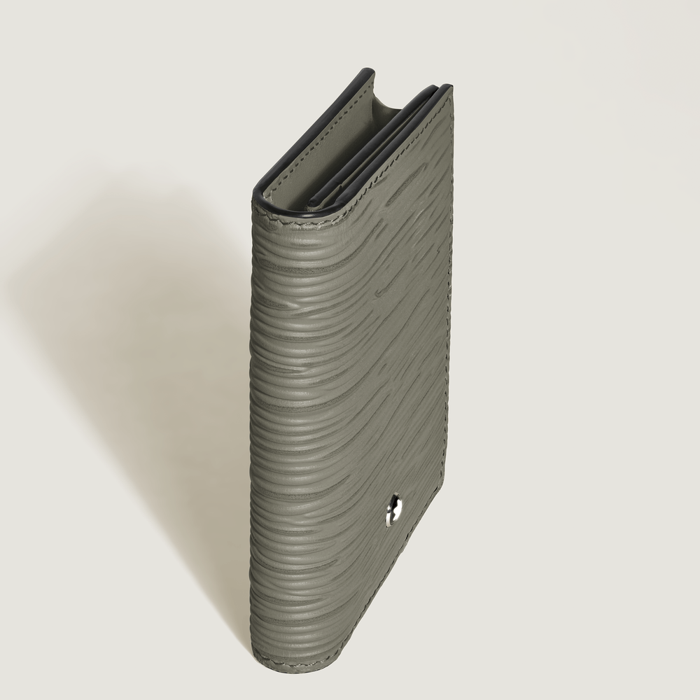 Tarjetero elegante de la línea 4810 diseñado para el uso diario. Fabricado en piel de becerro con estampado bark-tree motif en color gris medio, cuenta con ranuras para cuatro tarjetas de crédito y un compartimento adicional para tarjetas de visita. La emblemática estrella Montblanc está colocada a mano, lo que aporta un toque artesanal auténtico.